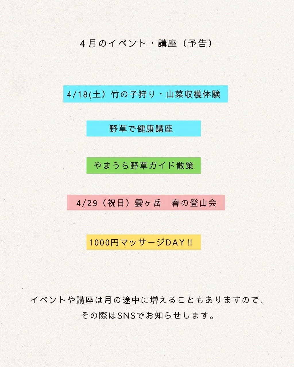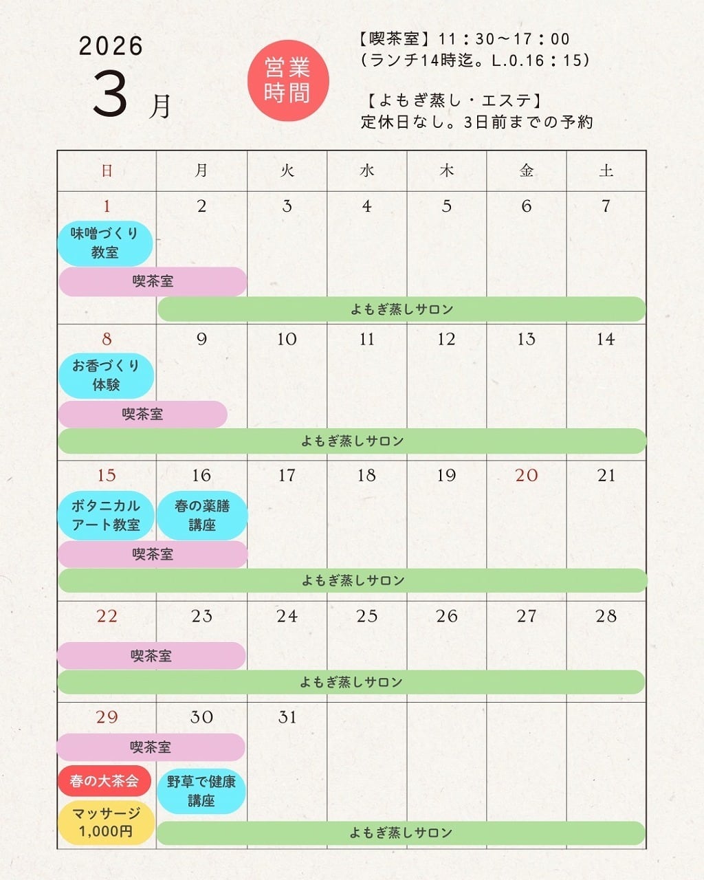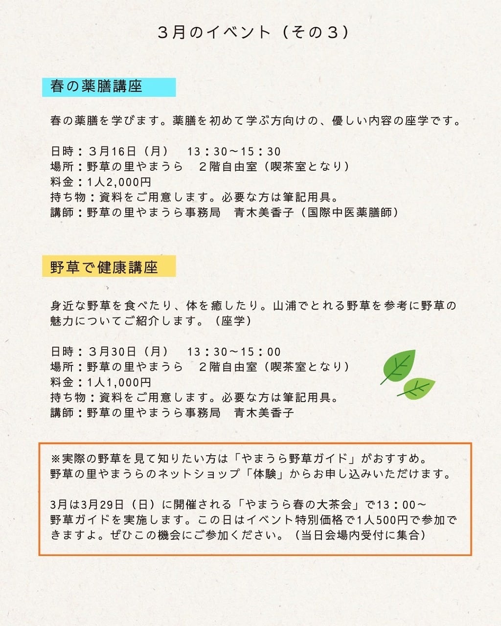 営業日・イベント・講座 | 「野草の里やまうら」Yamaura herb