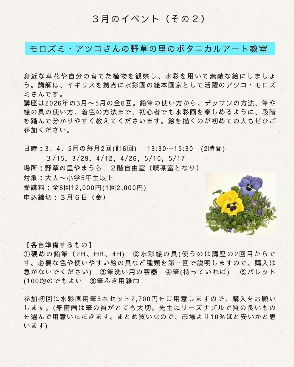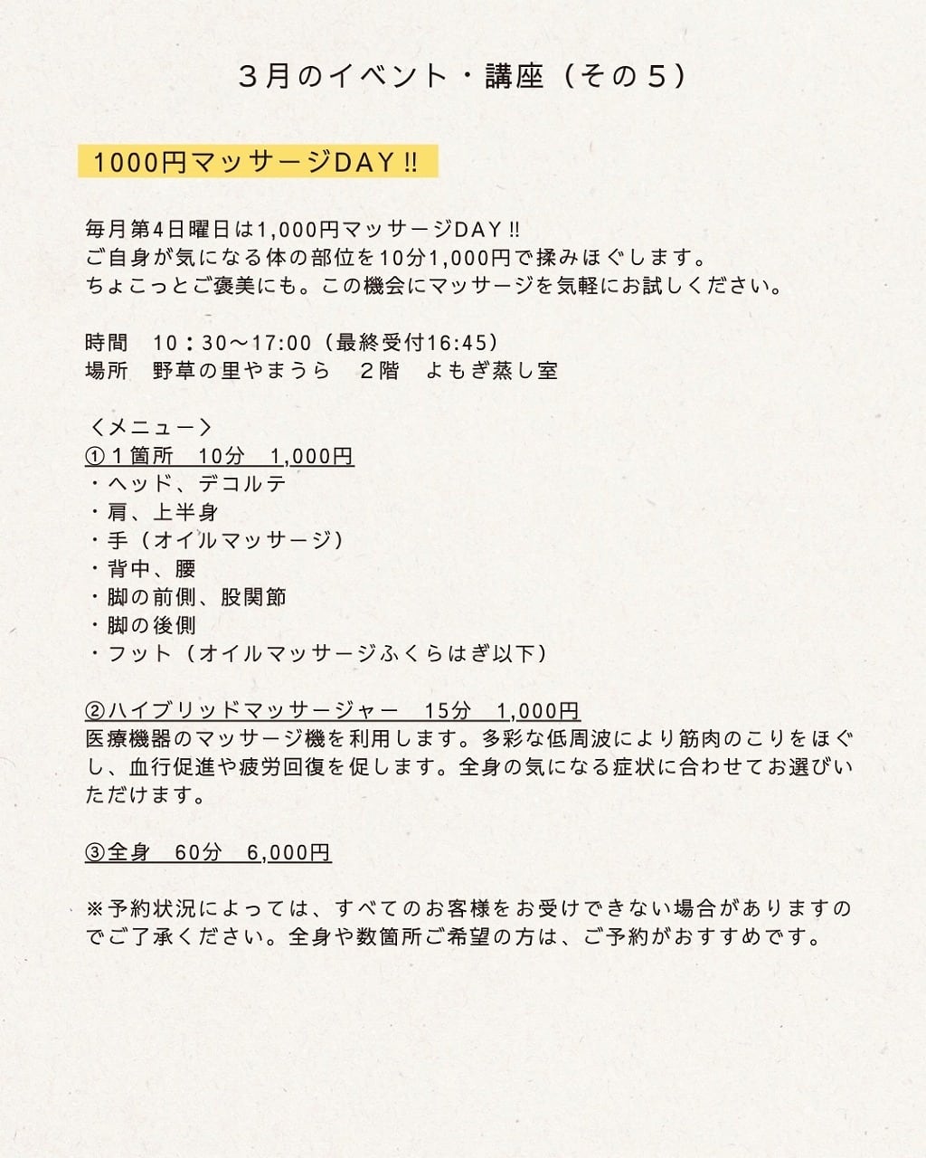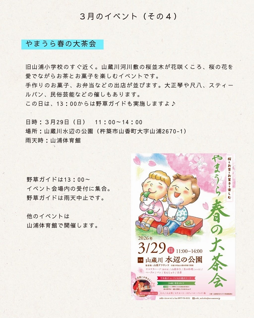 営業日・イベント・講座 | 「野草の里やまうら」Yamaura herb